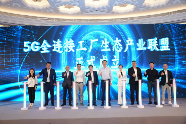 近日,由中国移动主办的5G全连接工厂大会在上海圆满落幕。大会进一步推进了5G融合应用发展赋能千行百业,助力打响“上海制造”品牌,促进上海制造业数字化、网络化、智能化转型的加速发展。作为上海移动智慧工厂方案的合作伙伴,乐鱼官方网站-乐鱼leyu(中国) 副总裁肖君应邀出席大会,并参与5G全连接工厂生态产业联盟签约仪式。图为5G全连